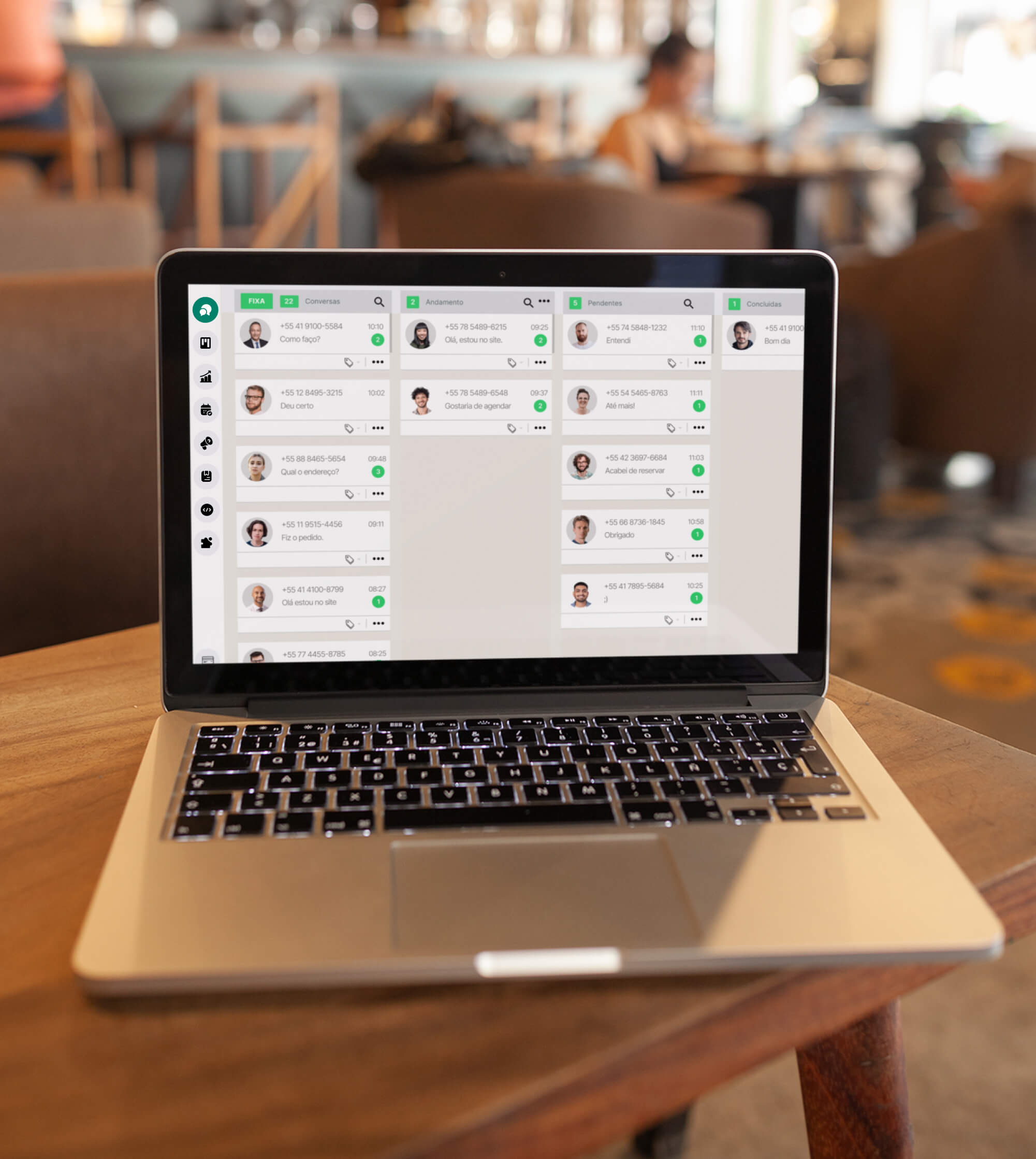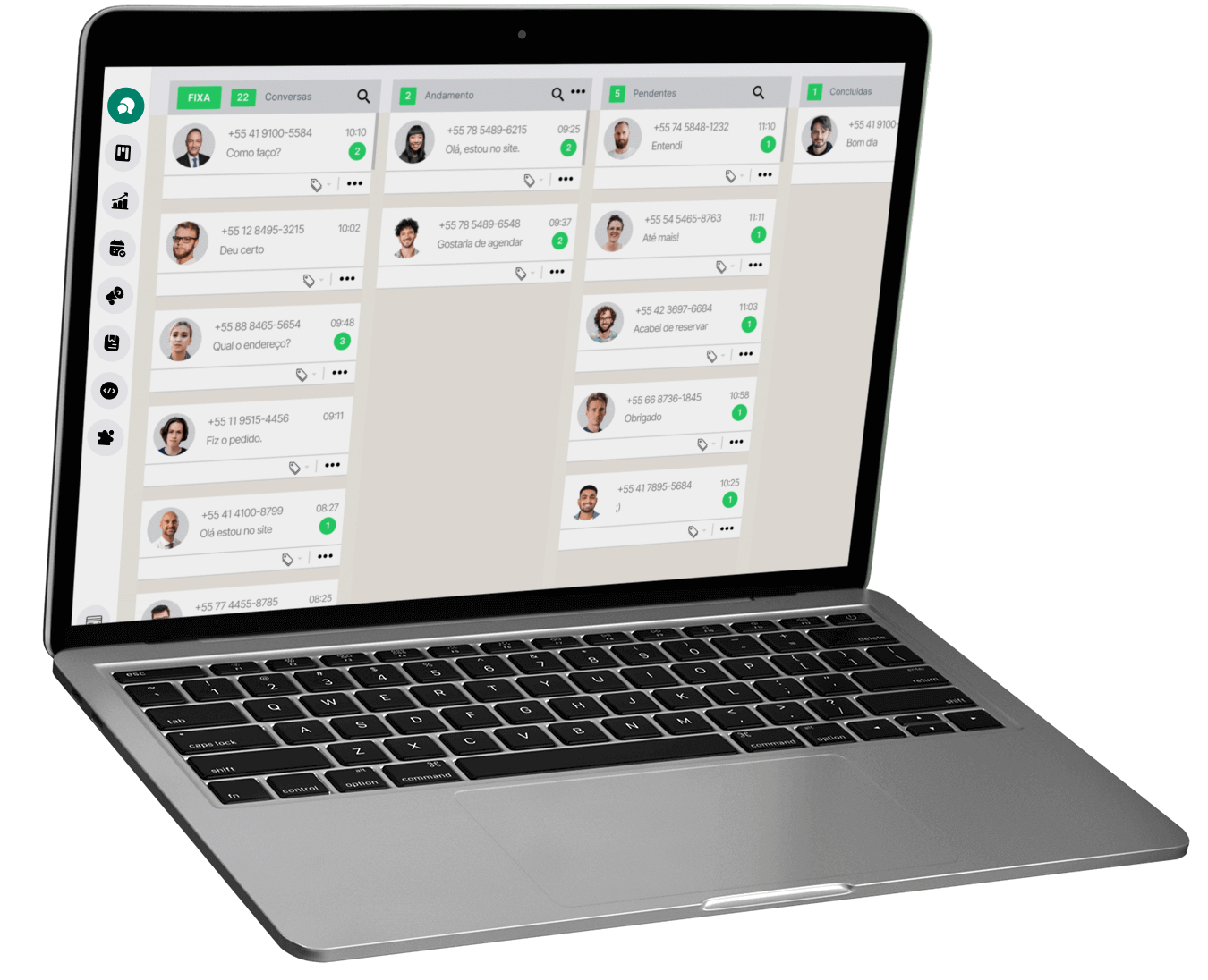 Acompanhe de perto os Negócios Iniciados, Negócios Ganhos, Perdas e duração média dos atendimentos.
